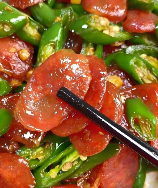 (2) 火候控制:炒腊肠时要保持中小火,避免腊肠炒焦。青椒的炒制时间不宜过长,以保持青椒的脆嫩口感。