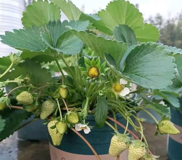 保持光照充足,偶尔浇点肥水,它就会顺利生长,草莓挂果时间比较长,冬季温度较高的话,就可以开始开花挂果了,春季是盛花期,结果子更多。