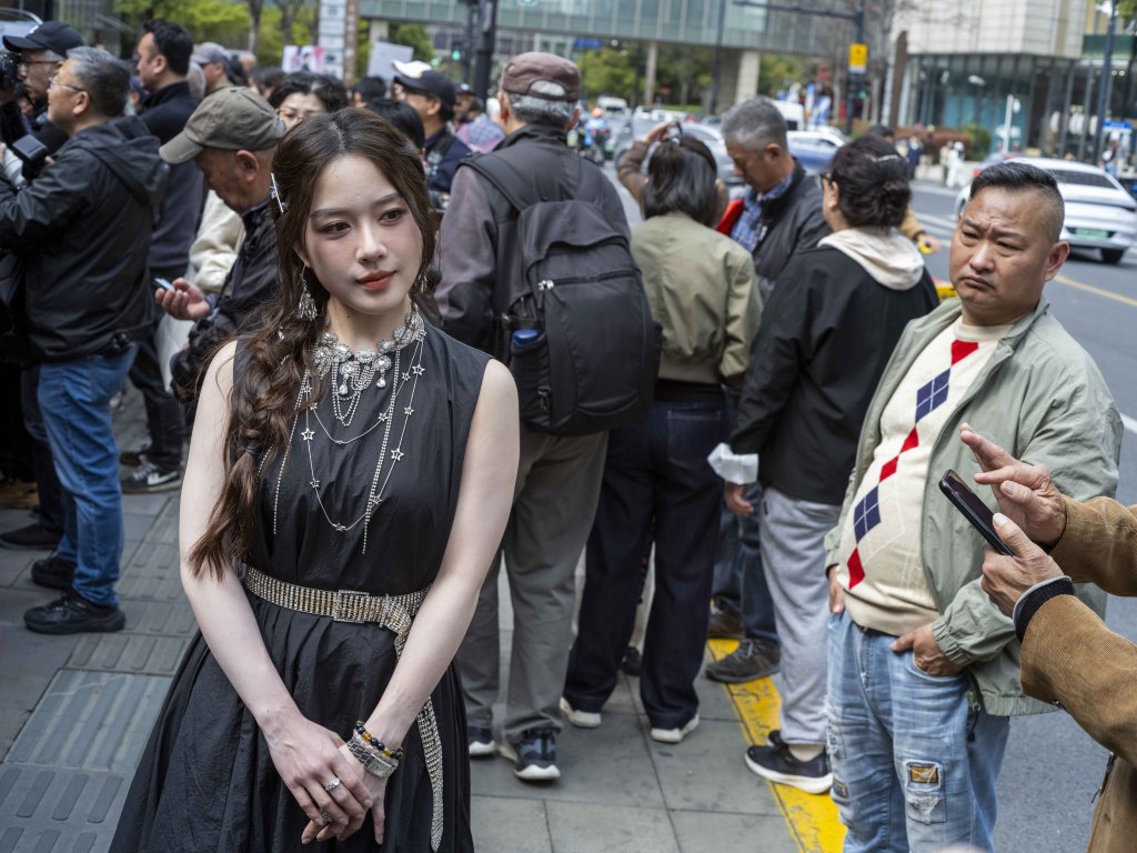 2026年3月29日,上海时装周秀场外。一名外籍女子被围观拍摄。澎湃新闻记者 许海峰 图