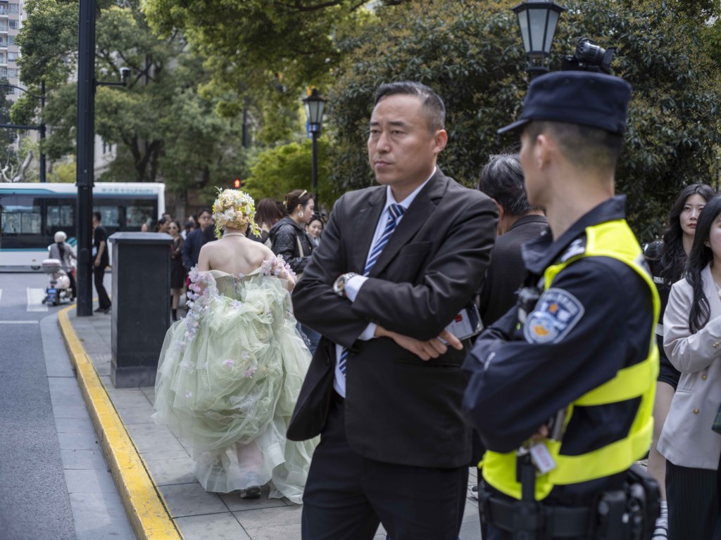 来自成都、目前在沪工作的“海哥”是其中一员,他每天在此拍摄近800张照片。“长得漂亮的女孩大多愿意在镜头前展示自己,但也有约百分之十几的女孩,或因害羞、或因其他原因,拒绝被拍。”他还对比了沪渝两地女性的特点:“上海姑娘更时尚洋气,成都姑娘则更显天生丽质。”现场,警察与安保人员不断提醒人群不要进入机动车道,以防发生意外。