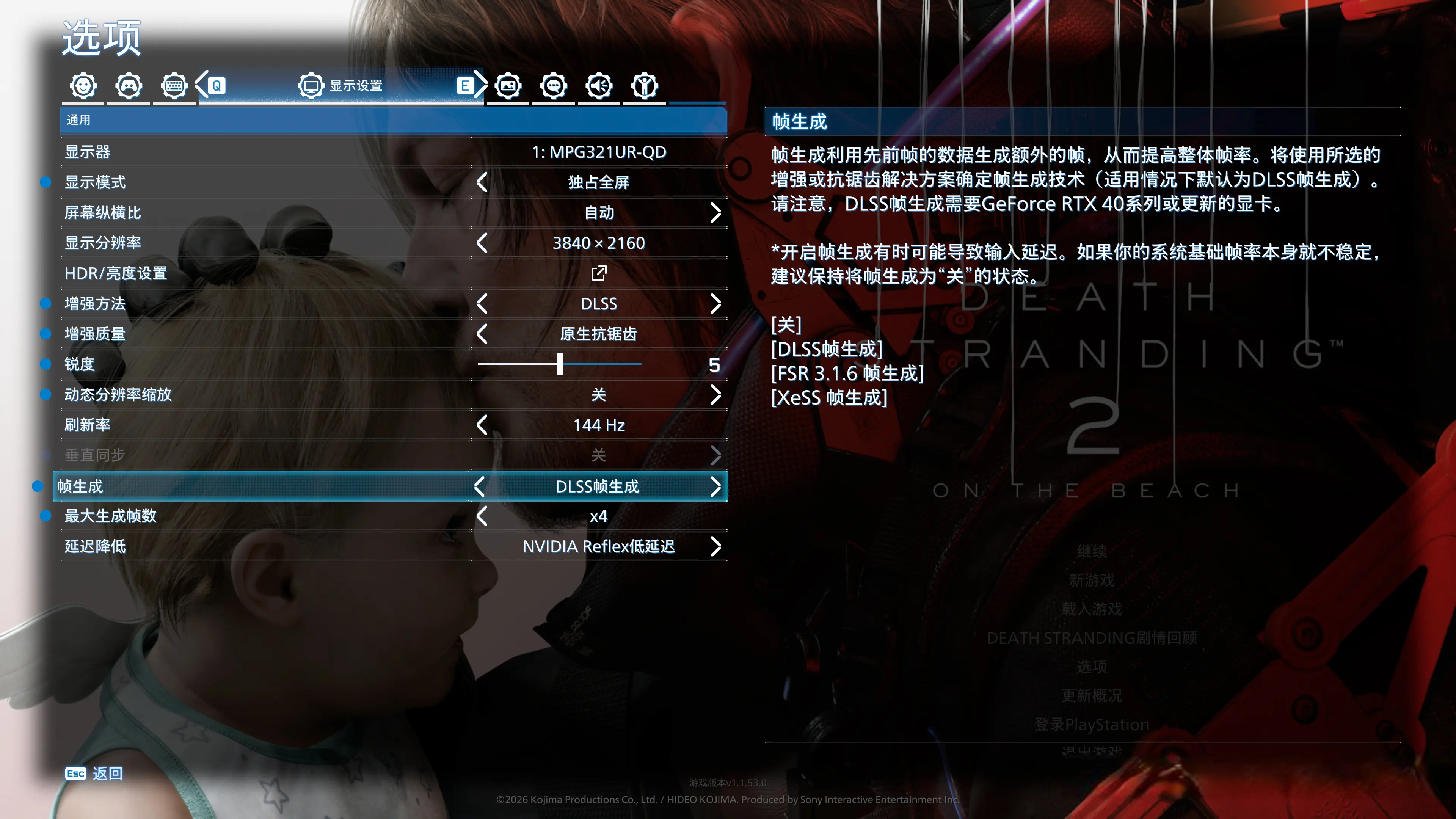 操作系统是Windows 11 26H1最新版本,显卡驱动是NVIDIA GeForce GameReady 595.97 WHQL最新版本,上一版本已覆盖《死亡搁浅2》的针对性优化。