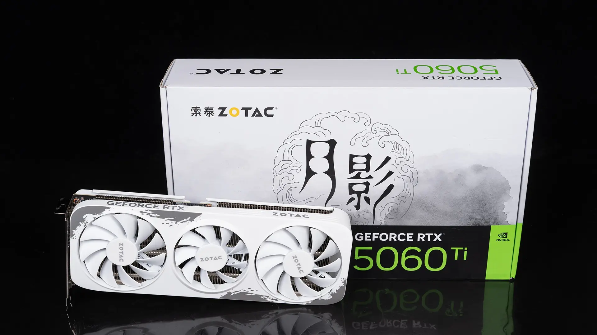 索泰GEFORCE RTX 5060 Ti 16GB 月影 OC,在圆润纯白外壳上,加了不少中国传统水墨艺术元素来诠释“月影”主题,拥有全新升级的冰芯散热系统,包括冰镜导热模组、冰脉3.0复合热管、密集阵列散热鳍片、对流穿透设计等设计。