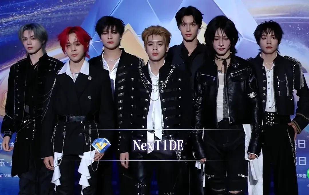 男团NexTIDE则穿了带有金属装饰的黑色服饰,大合照就像一群非主流发型师齐聚美发大赛的既视感。