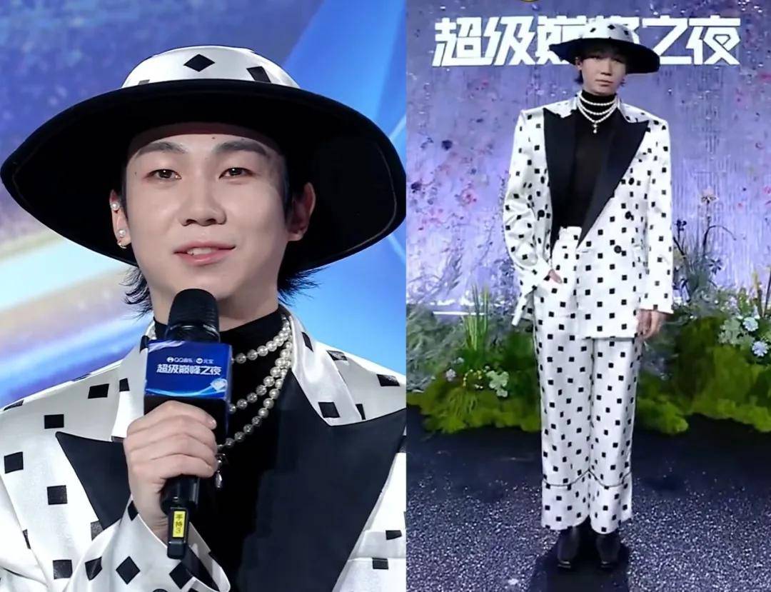 相较之下,年龄比较小的黄子弘凡反而没怎么捣鼓造型,只穿了经典的黑白西装,在一众造型独特的歌手中,一方面是清爽的,另一方面又会显得有些平淡。