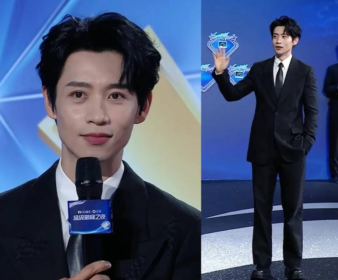 魏晨的妆造相当低调,发色是黑色的,西装也是黑色的,就连妆容也走自然清爽的风格,帅得很突出,尤其是在这场歌手齐聚的红毯上。