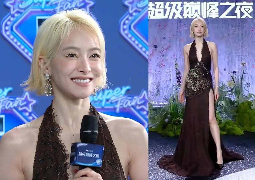 比如以往出席时尚活动的宋茜,发色都以黑色为主,但当她以歌手身份亮相红毯,就染了一头瞩目的金发,让人回想起当年爱豆时期的Victoria。不过现在的她比当年瘦了不少,所以穿起这条深咖挂脖长裙显得又高又瘦。