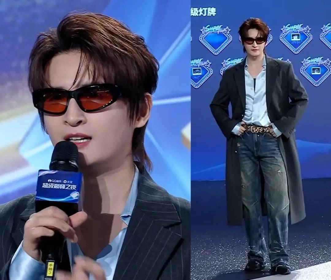 张远穿的是长款风衣搭配衬衫和牛仔裤,再加上红色墨镜,让人梦回以前非主流时期那些虚拟人物形象。