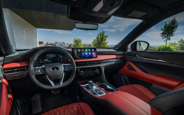 不讲客套话,外观方面英菲尼迪真把压箱底功夫拿出来了。黑化前脸配一字型日行灯,停路边确实霸气吸睛。
