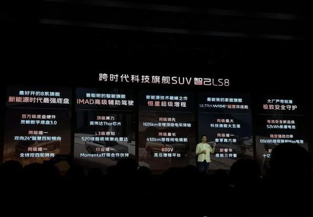 发布会现场,厂家正式公布了智己LS8各大版本预售价格及权益。