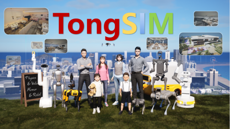 为支撑“通通”3.0的成长与进化,通研院同步打造了“全场景、多任务、高保真”的3D仿真虚拟世界——“AI小镇”。该平台内置上百个精细建模的室内场景与完整的城市级户外环境,具备高度还原的物理、交互与社交特性,为“通通”提供了一个无限接近真实的“练习场”。