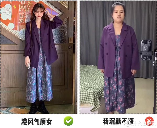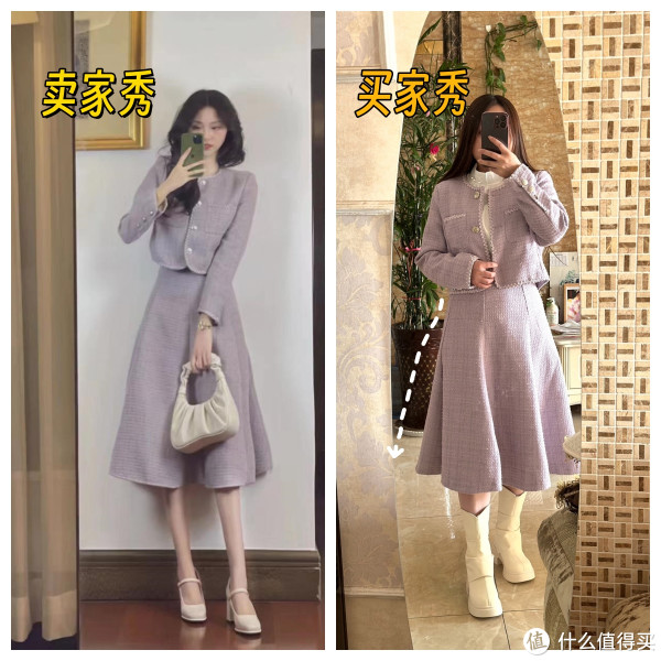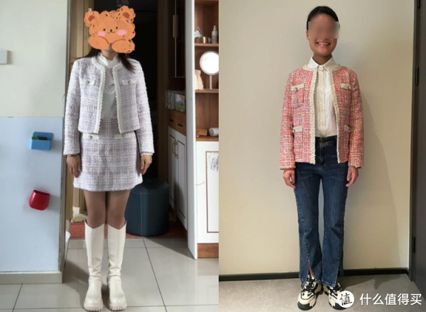 小香风是一种风格属性非常强的服装,粗呢面料加上花纹刺绣,看着很精致,实际很难驾驭。对比“卖家秀”和“买家秀”就知道了,同样的衣服,穿在不同人的身上,明显身材高挑、气质脱俗的人穿起来更好看。