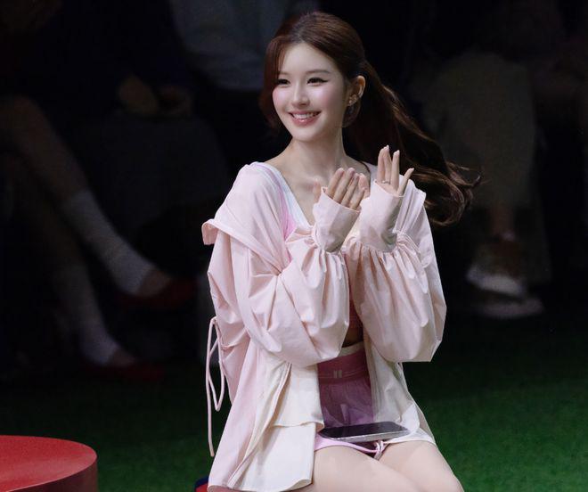 这次她的造型也备受好评,粉色运动内衣 + 同色系防晒风衣,很休闲且松弛的穿搭,高马尾发型更是彰显出青春活力,满满的元气少女感。