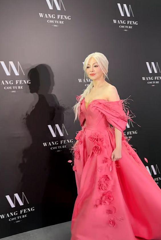 穿上玫粉色露肩蓬蓬礼服裙,完全没有扮嫩的感觉,只剩下灵动和娇俏,彰显出她不惧怕衰老的态度,让人不得不佩服。