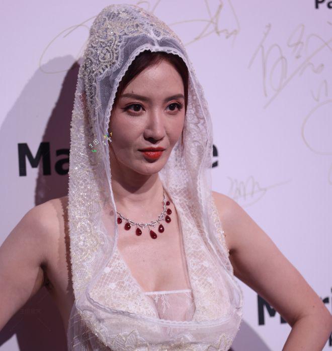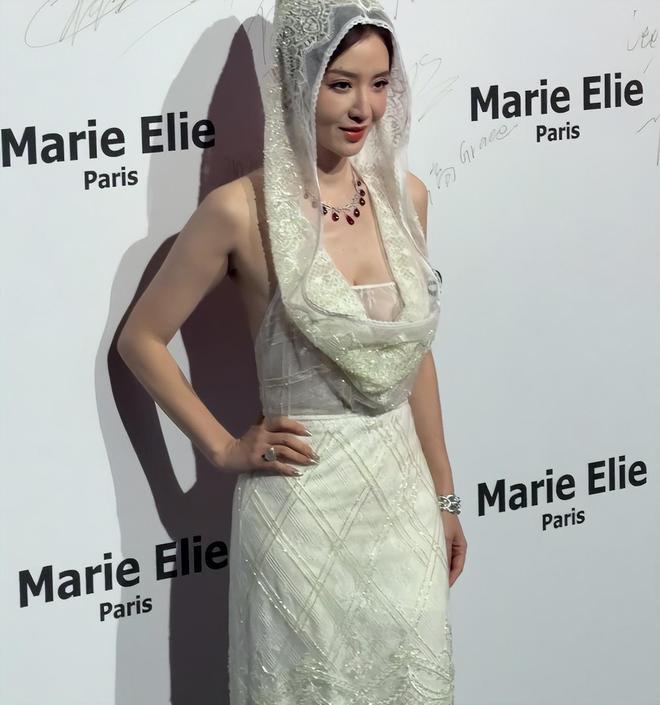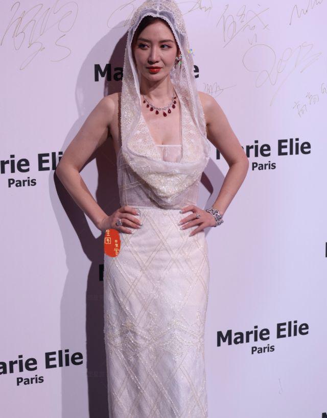 这套白色蕾丝露背长裙,将她性感的身材展现得淋漓尽致。