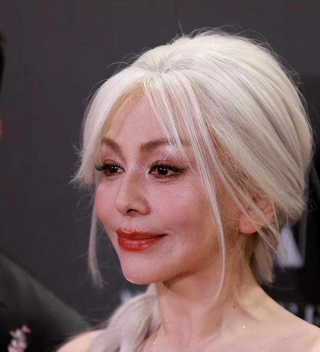 其实王琳的造型团队挺聪明的,没有强行淡化她已经 55 岁的年龄,反而将她的头发全部漂白,让气质更加高级、清冷了。
