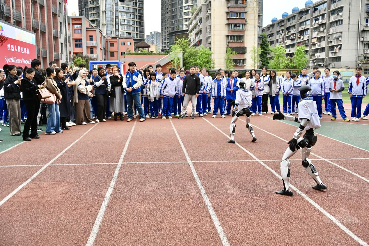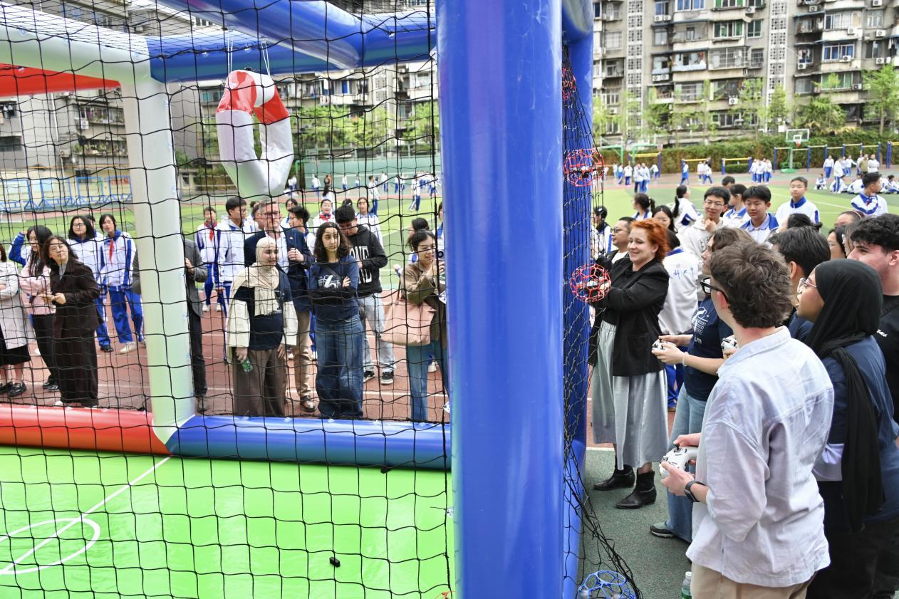 2026年3月30日,一场跨越8000公里的科技文化交流在成都七中万达学校通锦校区(成都市通锦中学校)进行。来自德国伯乐高级文理中学的师生一行走进这所中国校园,通过无人机足球赛、机器人编程及心理健康全息体验课等一系列前沿科技课程,亲身感受“中国智造”在教育领域的创新实践。