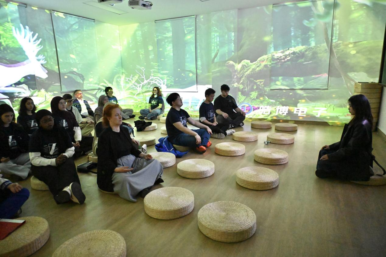 值得一提的是,此次行程中学校特意为德国师生安排了一节心理健康全息体验课。通过全息投影技术与专业心理引导相结合,抽象的心理学理论转化为可视化的动态场景,让学生沉浸于光影与声效构建的冥想空间中。