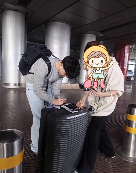 安吉没有鱼儿那么爱黏着妈妈,自己推着行李箱走在前面的他看着高冷,但实则也是位很暖心的男孩子。
