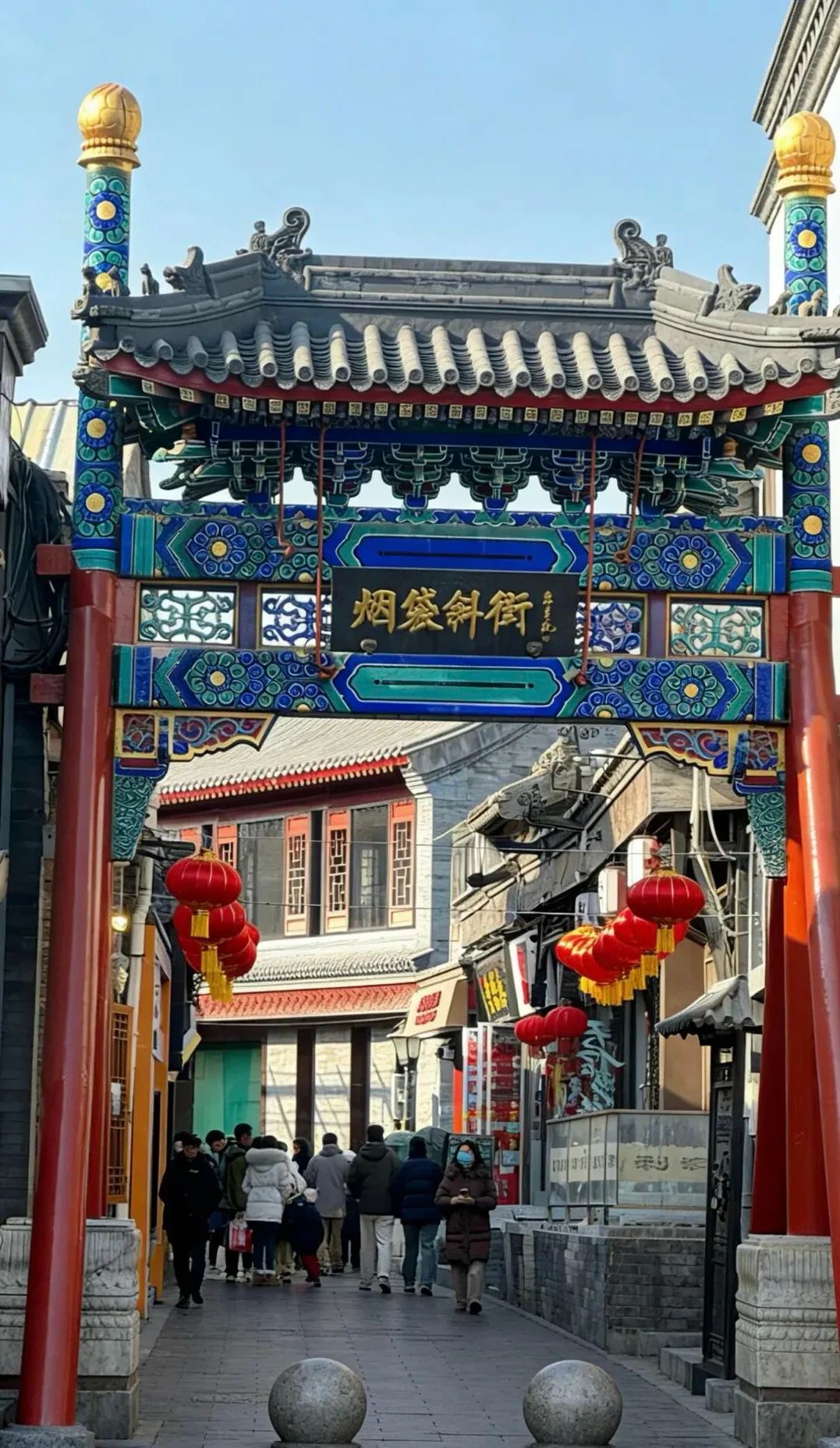 2. 烟袋斜街:弯弯曲曲的老街,两旁是手作小店、文创铺,老北京糖葫芦、驴打滚随处可见,尽头就是银锭桥。