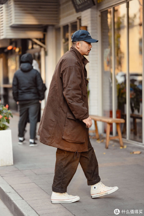 如果比较喜欢偏硬朗、复古一点的风格,则可以选择工装裤,软硬适中的面料撑起了裤型的立体挺括感,穿起来舒适又塑形。卡其色、棕色和工装绿作为首选,如果裤腿偏长的话,可以适当卷起裤腿边儿,便于更好地优化整体身材塑形。