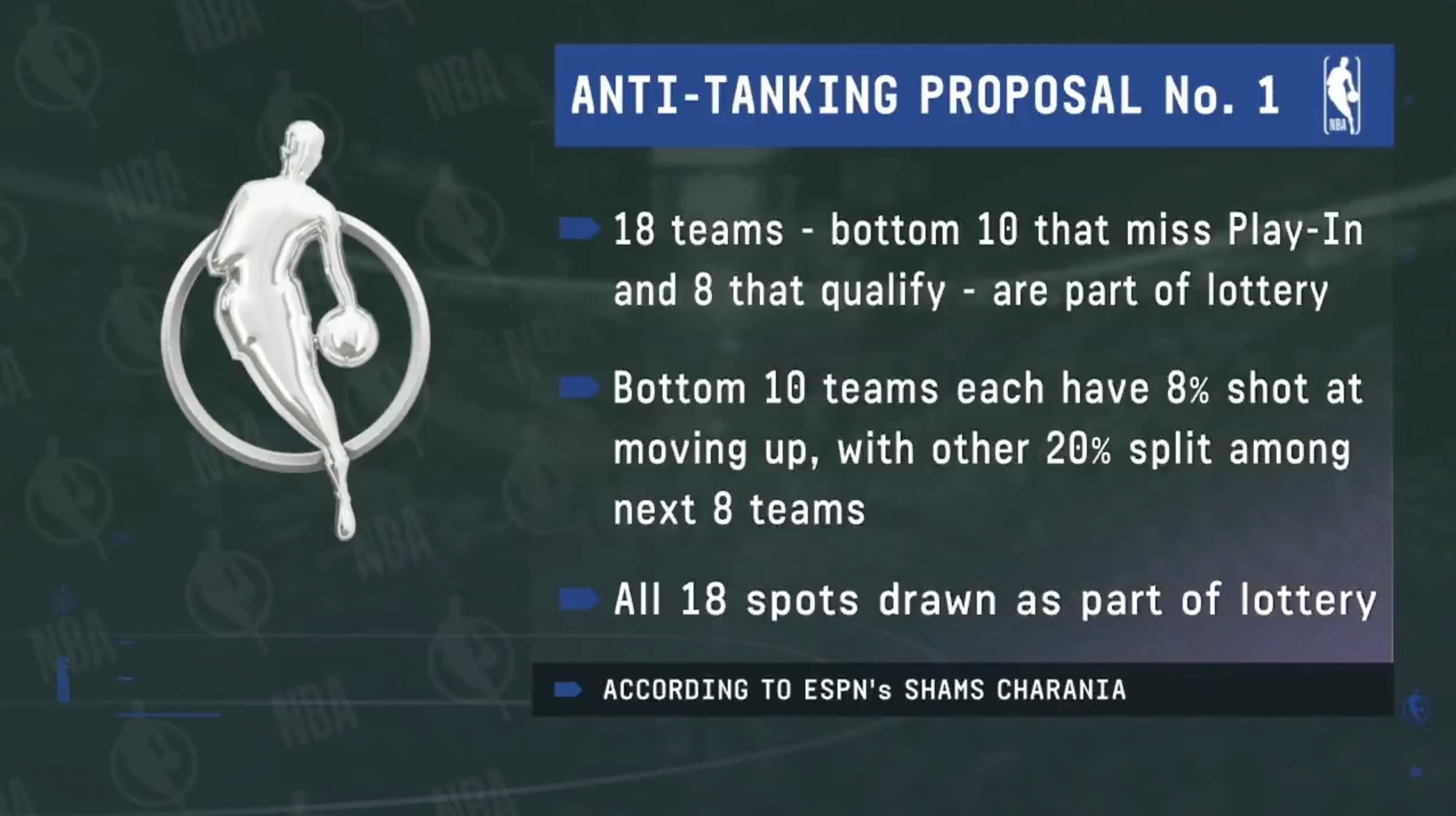- 垫底的10支球队各有8%的几率提升顺位,剩余的20%几率则分配给紧随其后的8支球队。