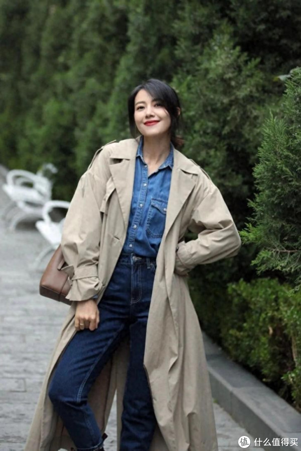 当处于换季时期,许多仙女会将风衣拿出来,或者购买时下流行的新款式。如果再搭上一条合身的牛仔裤,不仅会让你瘦上一圈,还能展现出你的穿搭节奏。高圆圆作为时髦女神,自然不会放过此种穿搭,虽然是40多岁年纪,但整个人看上去十分洋气。