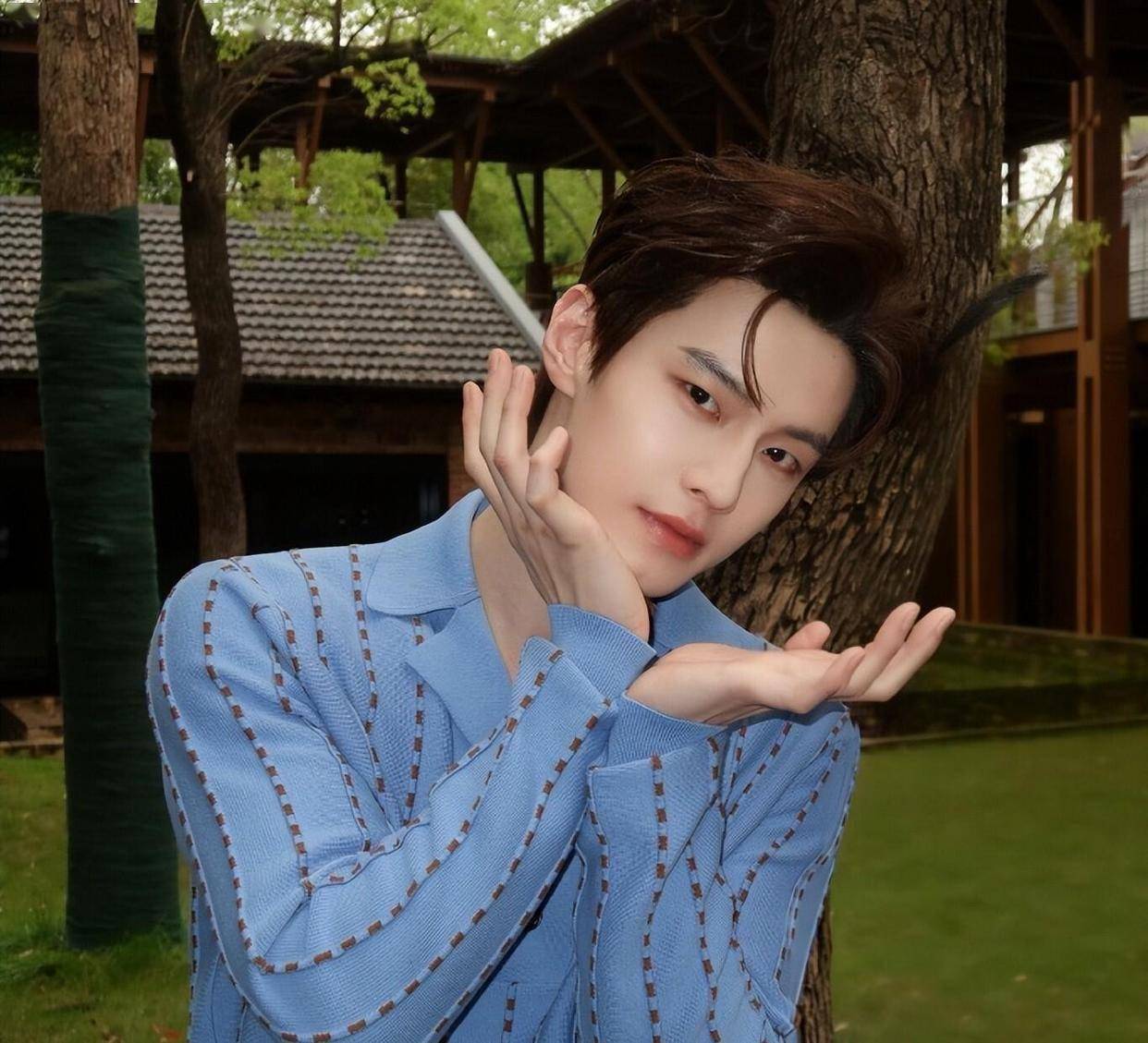 整个人就是清爽的贵公子范儿,慵懒又干净。 生图里皮肤白得发光,连个明显瑕疵都找不到。 站在那身姿挺拔,跟人打交道也落落大方,完全没有新人的局促感。