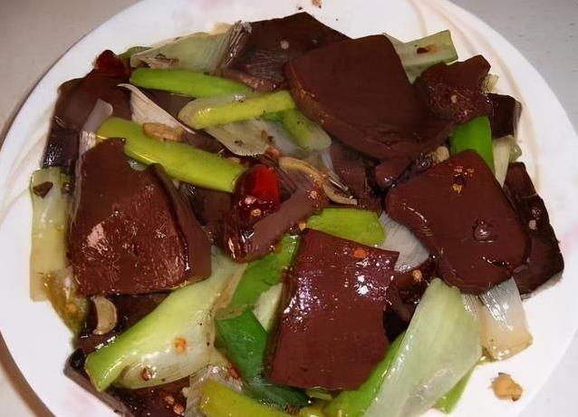 葱烧羊血把羊血切块,先煮沸后用凉水冲洗控干。大葱切成七厘米左右的大段,对半切开。锅里热油放花椒和大葱爆炒到略软,倒入羊血翻炒两三分钟。根据口味加生抽和老抽,怕粘锅可加少许水,收汁后放盐,用余热翻炒装盘。羊血软糯,大葱吸饱汤汁,咸香中带点葱的甜味。