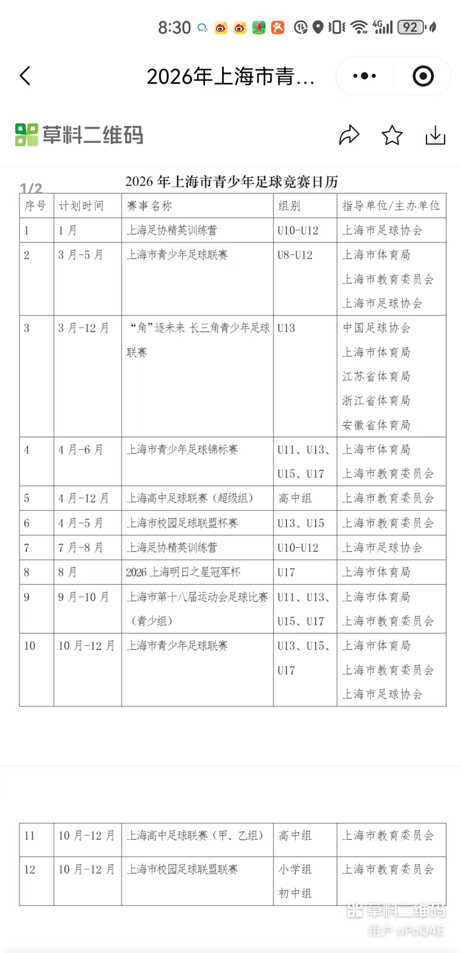 《2026年上海市青少年足球竞赛日历》发布。