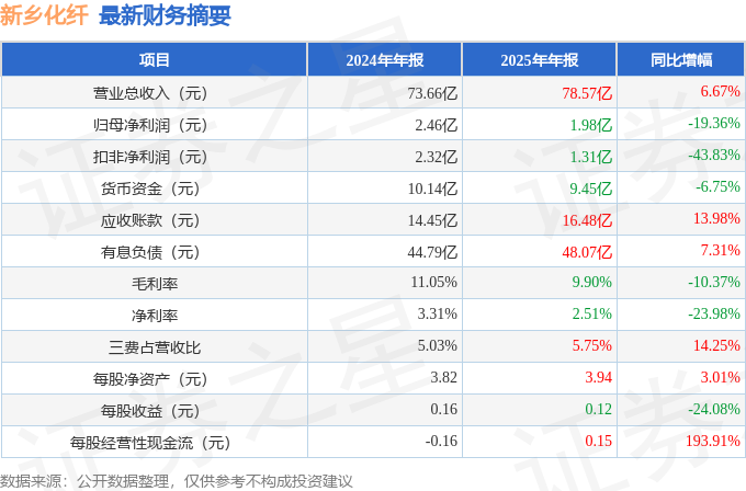 据证券之星公开数据整理,近期新乡化纤(000949)发布2025年年报。截至本报告期末,公司营业总收入78.57亿元,同比上升6.67%,归母净利润1.98亿元,同比下降19.36%。按单季度数据看,第四季度营业总收入21.17亿元,同比上升17.07%,第四季度归母净利润6478.02万元,同比上升40.02%。本报告期新乡化纤公司应收账款体量较大,当期应收账款占最新年报归母净利润比达832.07%。