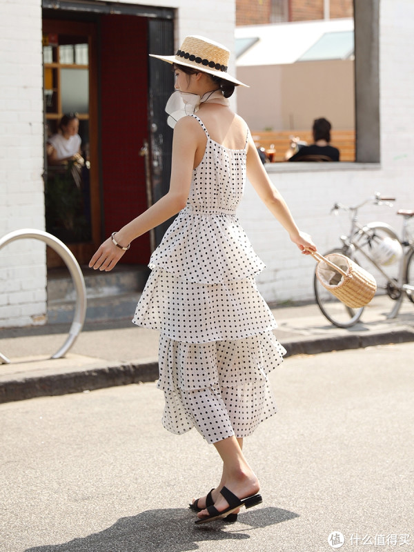 春天穿及踝裙,除了将重点放在上衣搭配上,还可以适当增加配饰来提升造型精致度。比如帽子与丝巾的结合,就刚好提升了整体穿搭的时髦与精致感,让原本单一的裙装造型看起来更加时髦有品味,尽显优雅浪漫的法式风格look,随性且松弛。