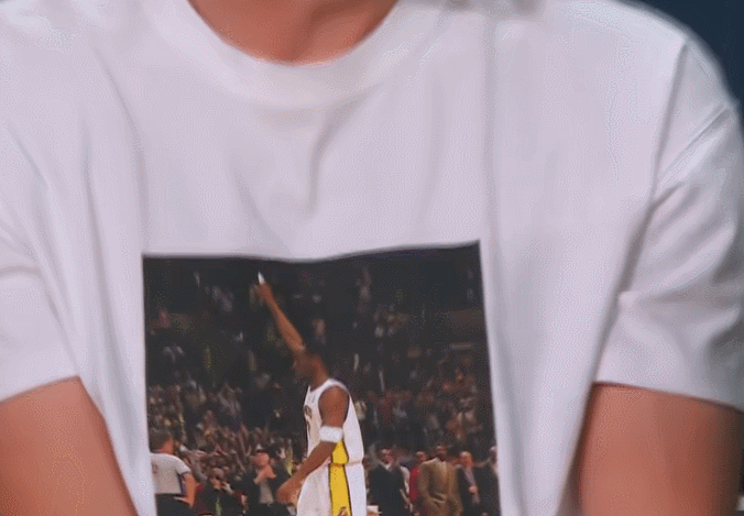 细节满满!加索尔身穿印有科比海报的T恤场边观战