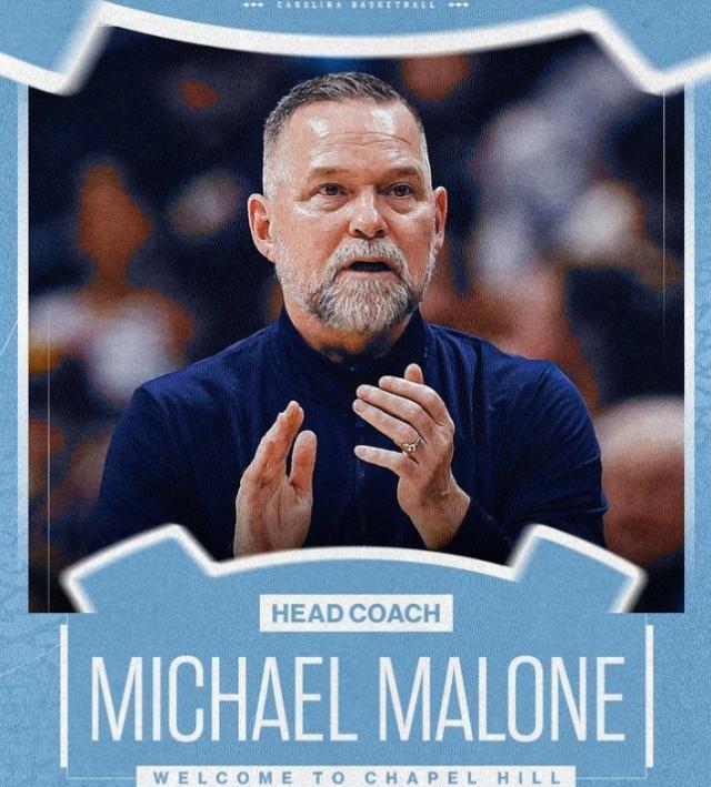 4月8日,北卡罗来纳大学男篮官方宣布,球队正式聘用迈克·马龙担任主教练。