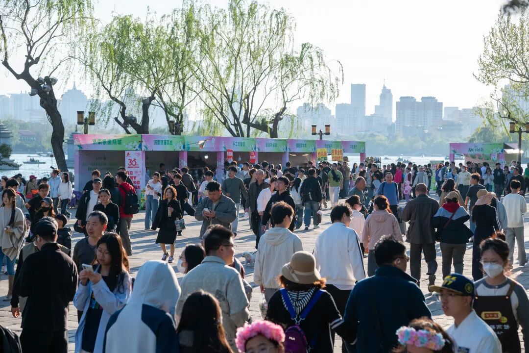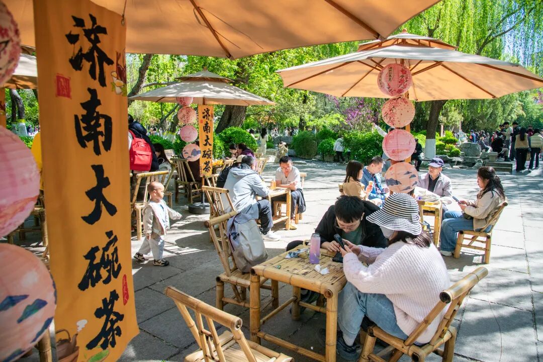 作为济南的“流量担当”,趵突泉绿柳如烟,繁花似锦,吸引众多游客踏春而来。三股水喷涌有力,尽显勃勃生机;花朝荟市集融合泉畔好物与非遗手作,泉水泡茶散发诱人茶香。游客们在欣赏自然美景的同时,也能深入感受传统文化的独特韵味。