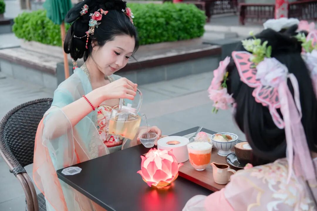 历下亭岛风景独好,四面环湖,凭岛临风,天福轩茶馆的“杜甫宴历下亭”品茶套餐成为游客热门之选,在海棠花下悠然品茶,尽览湖光山色,收获独一无二的绝佳体验。