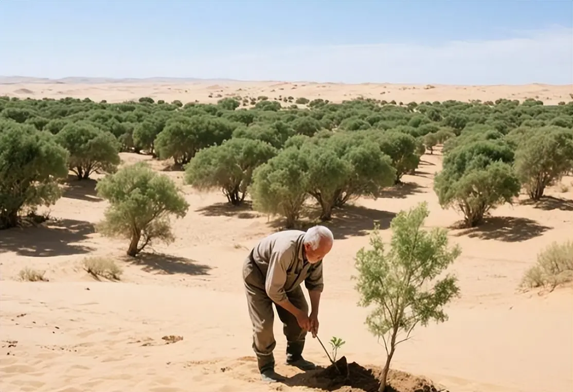 就在这帮石油富豪被沙漠难住的同一时期,山西有个农民在沙地里埋了两个塑料袋,树活了。