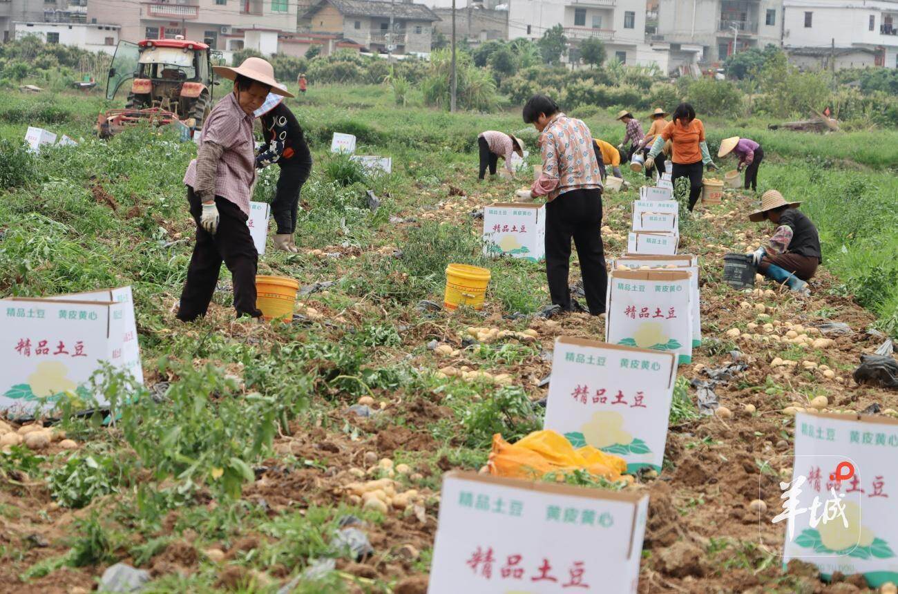 在宋桂镇茆岭村,种植大户黎金强的30亩马铃薯迎来好收成。“今年亩产从去年的4650斤提升到5450斤左右,全季收成约1500万斤。”他一边忙碌一边算着账。眼下采收已近尾声,产品主要销往佛山、肇庆等地市场。让他尤为感动的是,广东工商职业技术大学直接到地头采购了2.1万斤马铃薯,以购助农,解了销售之忧。
