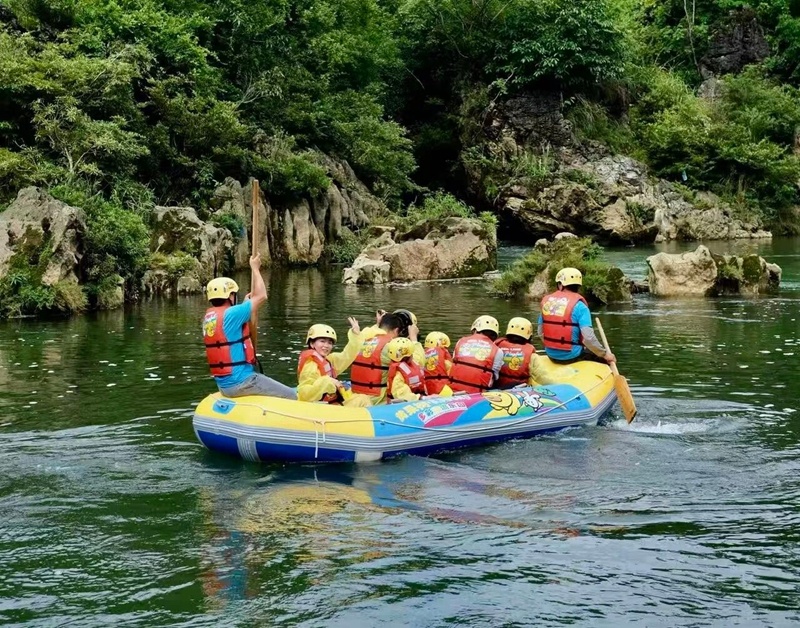 “真的太有意思了!河道时而险峻陡峭,时而舒缓平缓,再配上可爱的小黄鸭主题,让整个漂流过程充满惊喜与乐趣。”2025年夏天,游客聂先生在体验完黄果树漂流后,忍不住称赞。