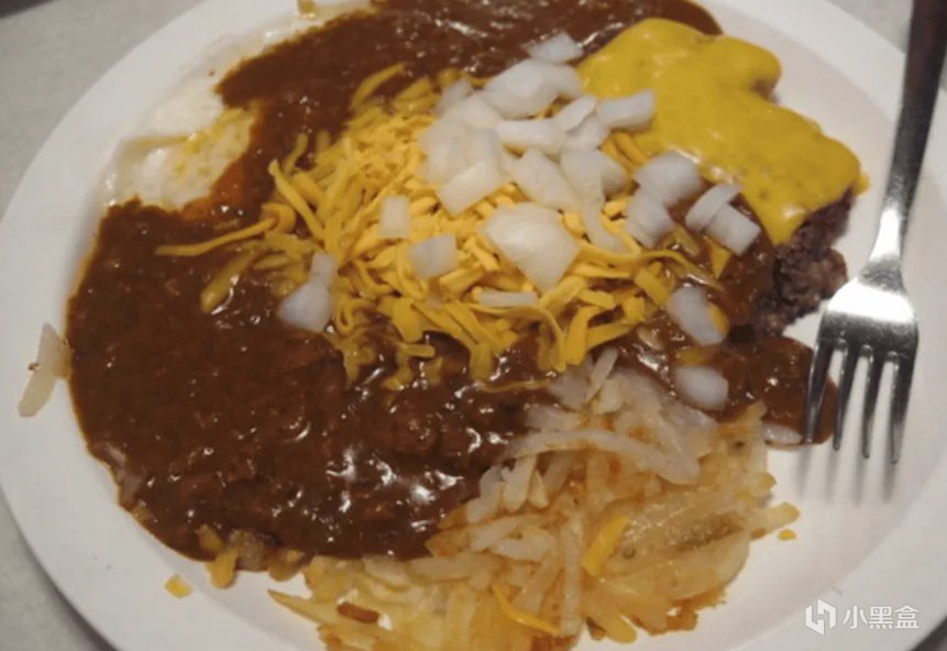 这是圣路易斯的传统美食。它是将鸡蛋、炸土豆饼、汉堡肉饼堆在一起,再淋上肉酱辣椒(chili con carne)和奶酪的丰盛拼盘。