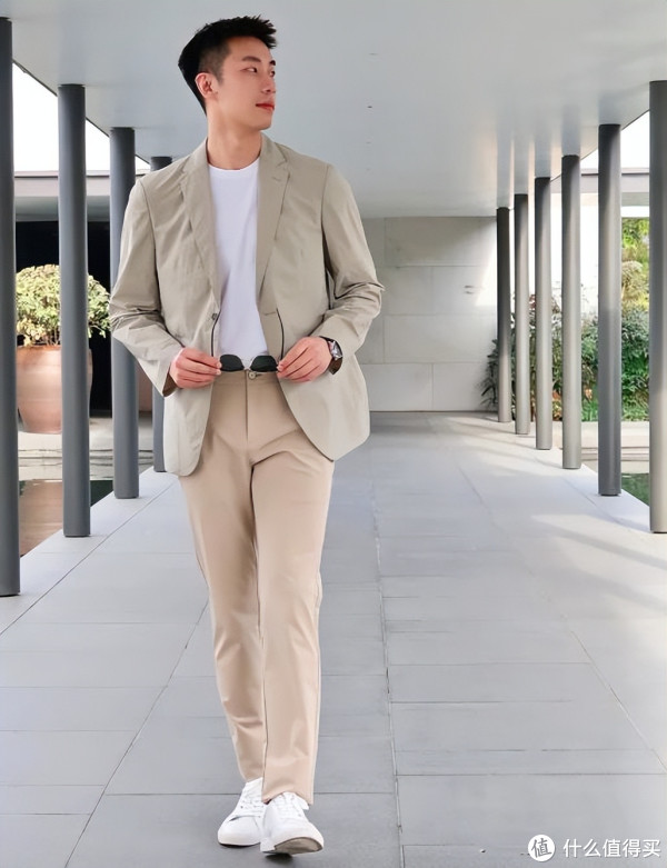 对于鞋子的选择和搭配,当西服配上休闲裤时,可以与皮鞋进行组合,兼顾正式与休闲,反倒更能突出雅痞气质。同时还可以与运动鞋进行组合,增加造型时尚休闲感,降低视觉年龄,赢得不费力的时髦,整个人看起来年轻有活力。