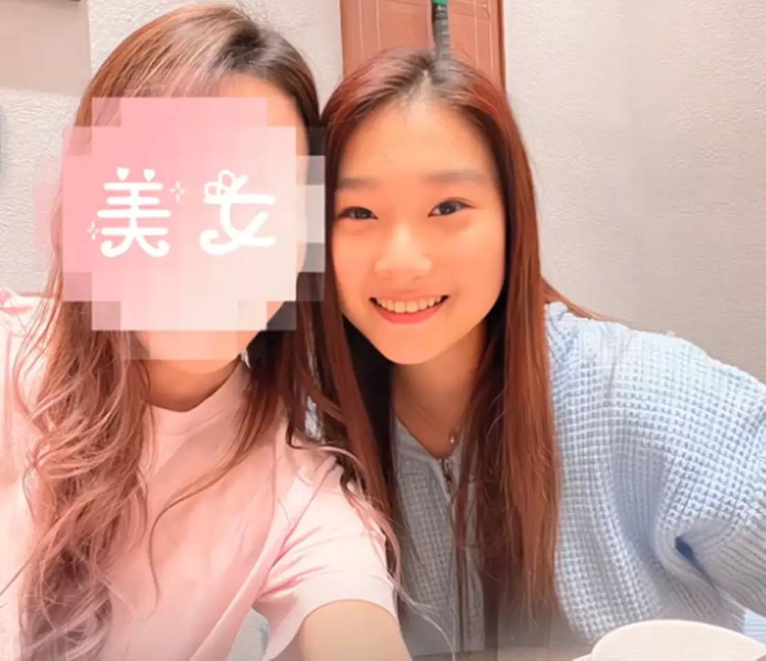 在包间里,17岁的爱马海大大方方的出镜了。爱马脸型很小、长得特别精致可爱。弯弯的月牙眼、双眼皮,是非常耐看的女孩子。