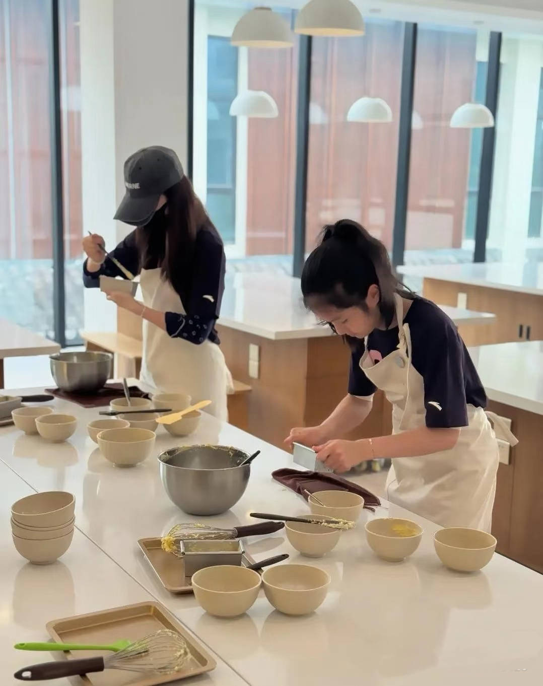 其实爱马也是一个非常喜欢做美食的孩子,她曾经晒出带着妹妹一起做面食的视频,姐妹俩同穿黑色衣服、系着白色围裙,在干净的台面上练习。