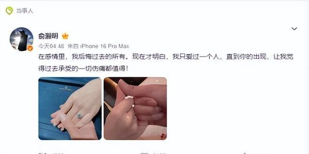 俞灏明一直保持着积极的态度。几年前他就公开宣布恋情,还晒出求婚戒指。那一刻,他心里大概充满了期待和喜悦。