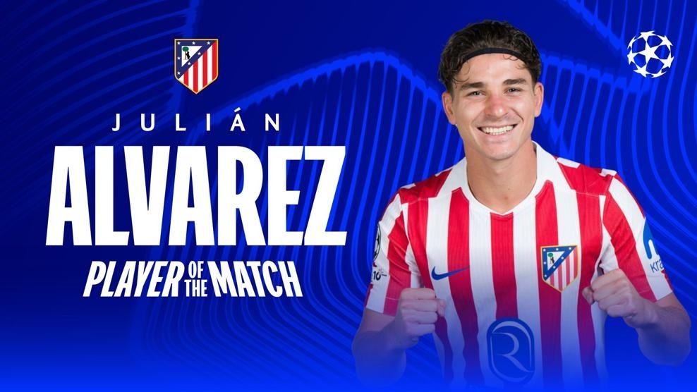 欧冠1/4决赛首回合,马德里竞技客场2-0击败巴塞罗那,此役打入直接任意球的阿尔瓦雷斯当选欧冠官方全场最佳球员。