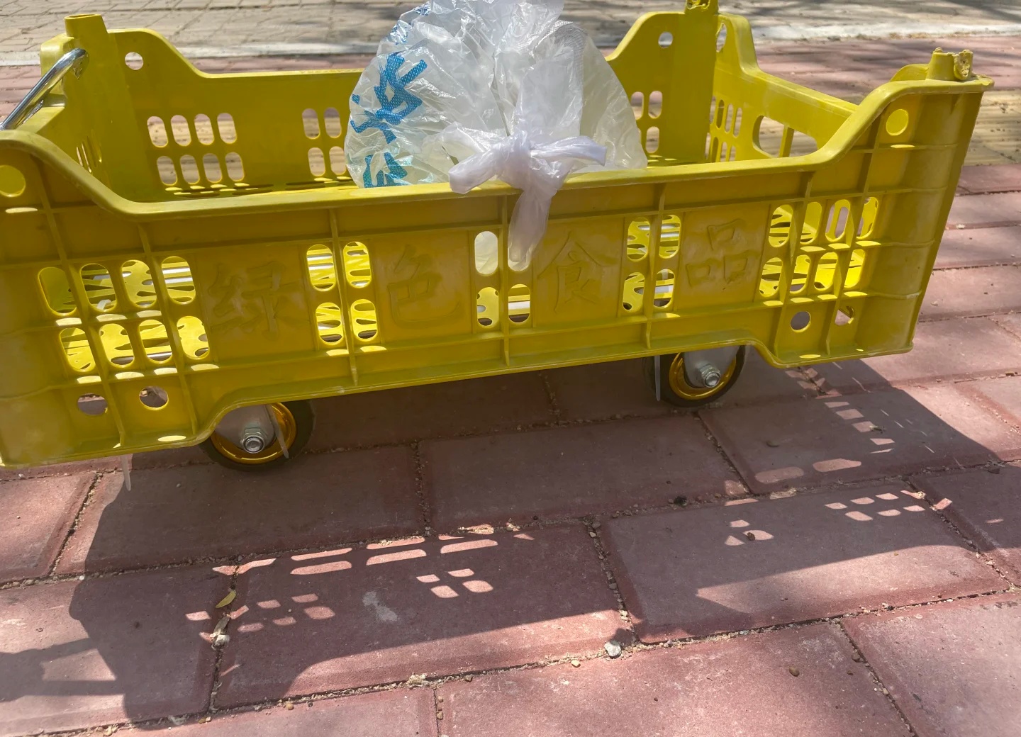 出门去拿快递,太重的东西根本拿不动,没有小推车,可以用水果筐改造一个小拉车,成本低,用来取快递特别方便很简单,我们只要将水果筐的底部用扎带固定4个万向轮就可以了,