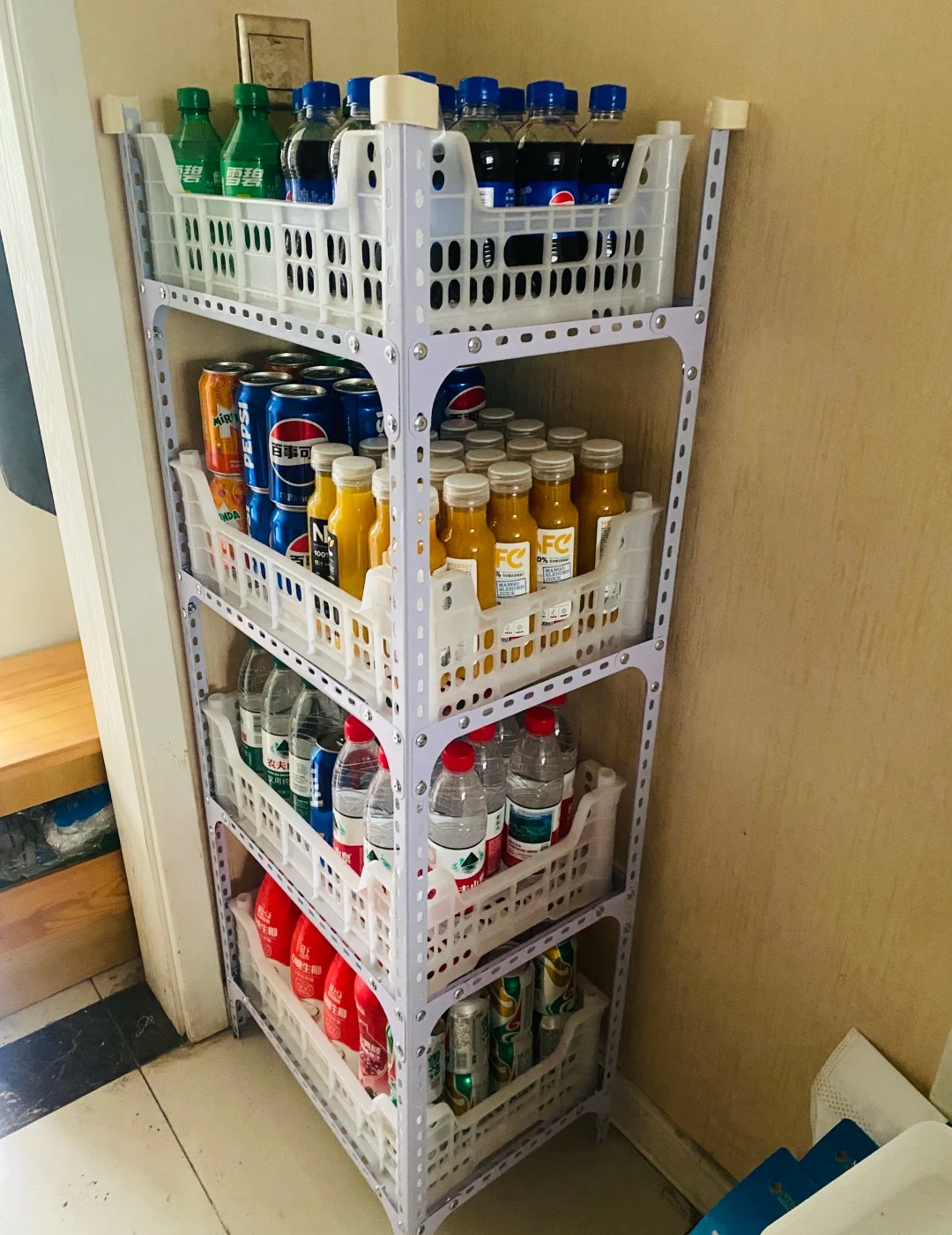 放在厨房的角落里,可以用来收纳饮料,零食,容量也比较大,而且拿取特别方便,也不占地方。