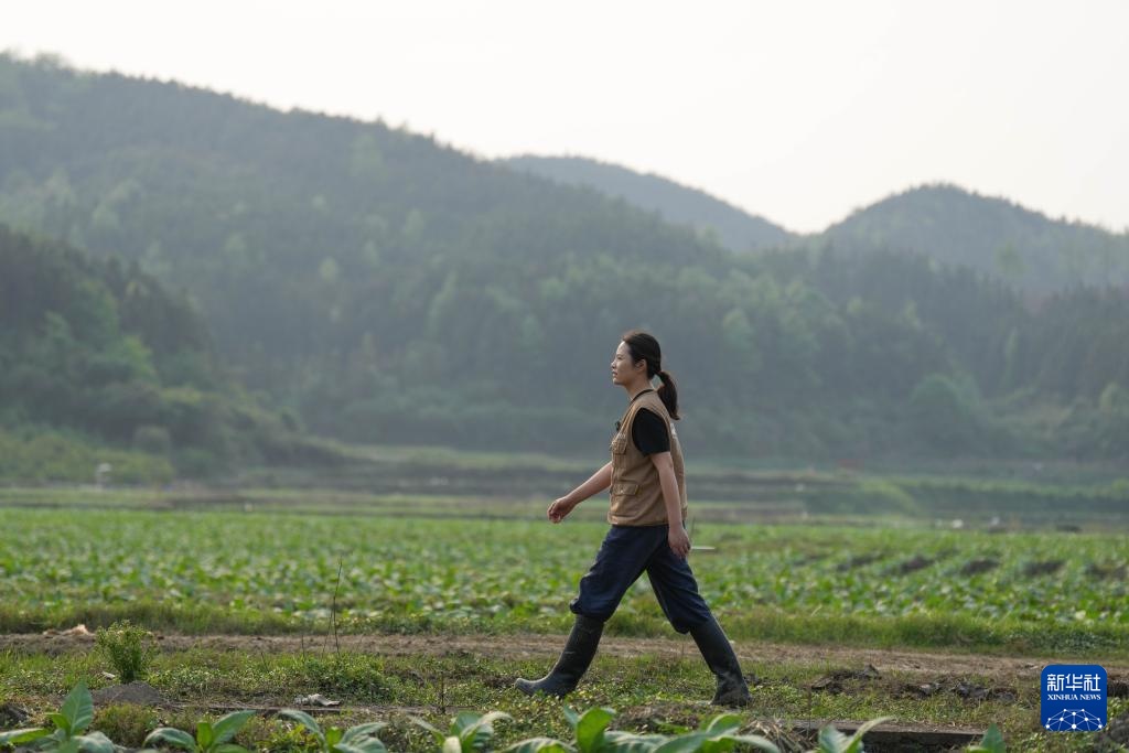 4月9日,骆雨行走在华塘镇的田间。