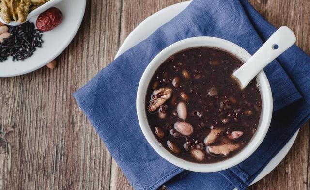 8. 完成享用:煮好后的核桃黑芝麻粥颜色呈现出浓郁的黑色,粥的香气扑鼻,趁热食用,享受美味滋补的粥品。