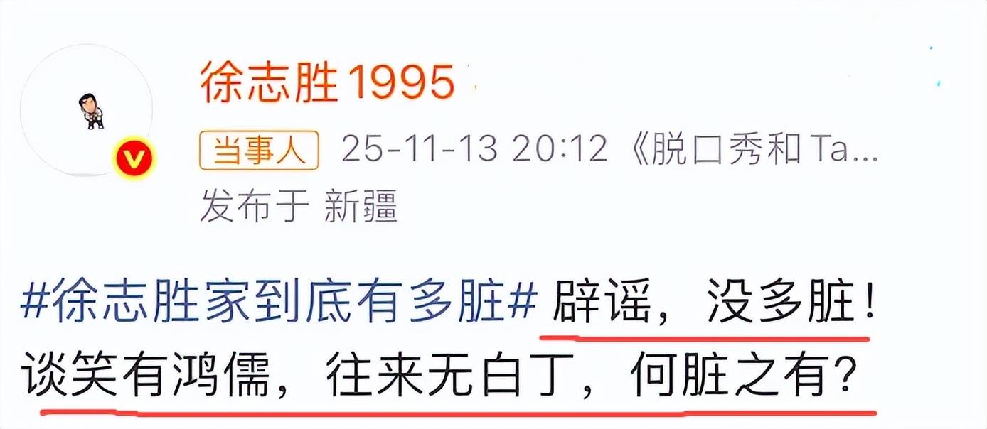 这番吐槽很快就上了热搜,吸引了1.3亿的热度。逼得正在新疆录节目的徐志胜,不得不连发两条内容回应: