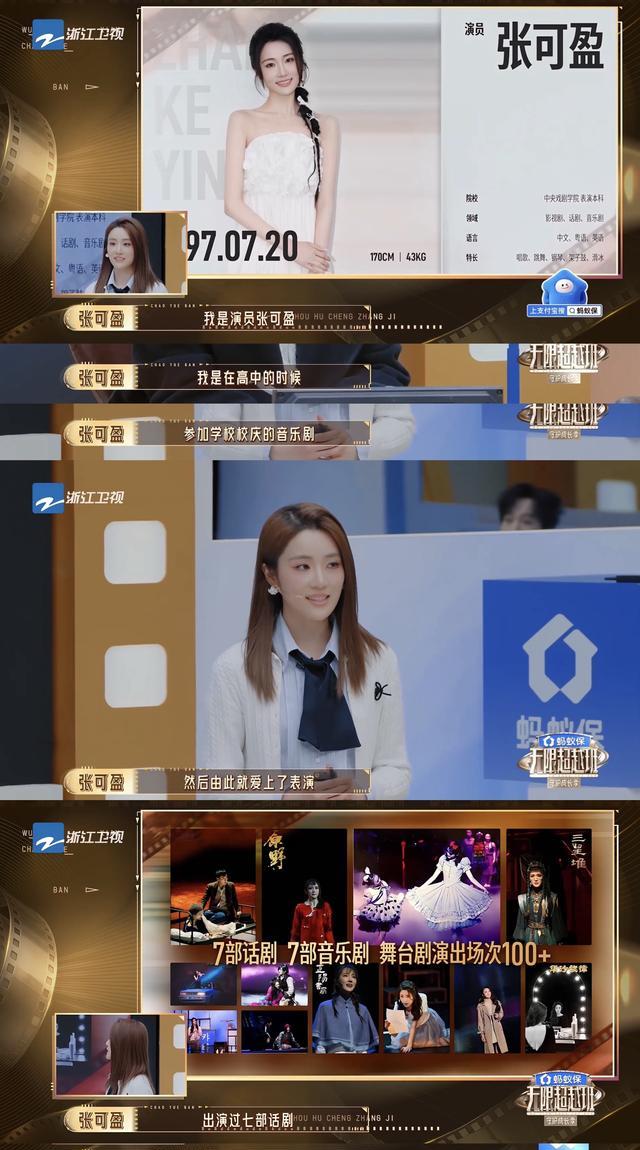 在自我介绍环节,张可盈的履历也让不少观众惊喜。从16岁第一次演音乐剧开始,她就爱上了表演,目前已经演过7部话剧、7部音乐剧,总演出场次超过100场。要知道对她这样的年轻演员来说,能沉下心来,投入这么多时间和精力在舞台上打磨自己,真的是非常可贵了。其中最具代表性的就是话剧《原野》,她被称为继徐帆、刘晓庆之后的“第三代金子”,在节目中,她也表达了对刘晓庆老师的敬意。